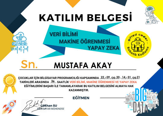 I was born in Mersin on 03-05-2007. I completed my primary education at Mersin Yenişehir Primary School. During the four years I studied at Mersin Private Yenişehir Final Secondary School, I participated in many competitions and achieved important degrees. I studied my 10th grade at Private Mersin Basarim Science High School. I am studying my 11th grade at Kozmos Yazılım Anatolian High School with a 100% scholarship. In 2016, I started the team formed for my Secondary School's FLL (First Lego League) competition with ambition because they only recruited people who knew software. In this process, my biggest supporter is my teacher Didem and I am taking software training at the coding course called Gifted Coder Mersin, which helps me learn the R&D process. My dear mother (Elif Akay), who played the biggest role in shaping my life and helping me reach this level, is also our project coordinator. She gave me a lot of support in every way she could for my project-based upbringing and self-improvement. Despite many setbacks, we have achieved and continue to achieve high rankings in many national and international project competitions of which I was the captain of the course. In light of this, I train students for national and international project-based competitions. In this context, I am improving myself in computer programming and I would like to thank my mother, my teacher Didem Dolek, and Gifted Coder Mersin, who have contributed a lot to me.